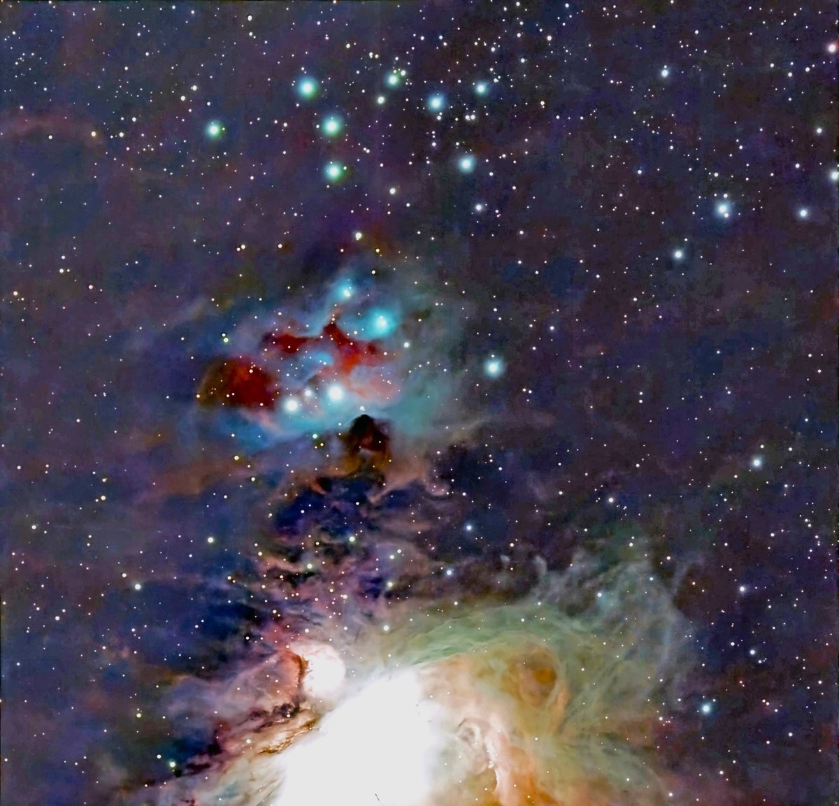 うるぎ星の森オートキャンプ場で分割撮影した4枚のオリオン大星雲の画像を、手動でモザイク合成。フレーミングモードのモザイク撮影だと、完成画像の解像度が下がってしまう為、この手段をとってみた次第です。かな・・・▶