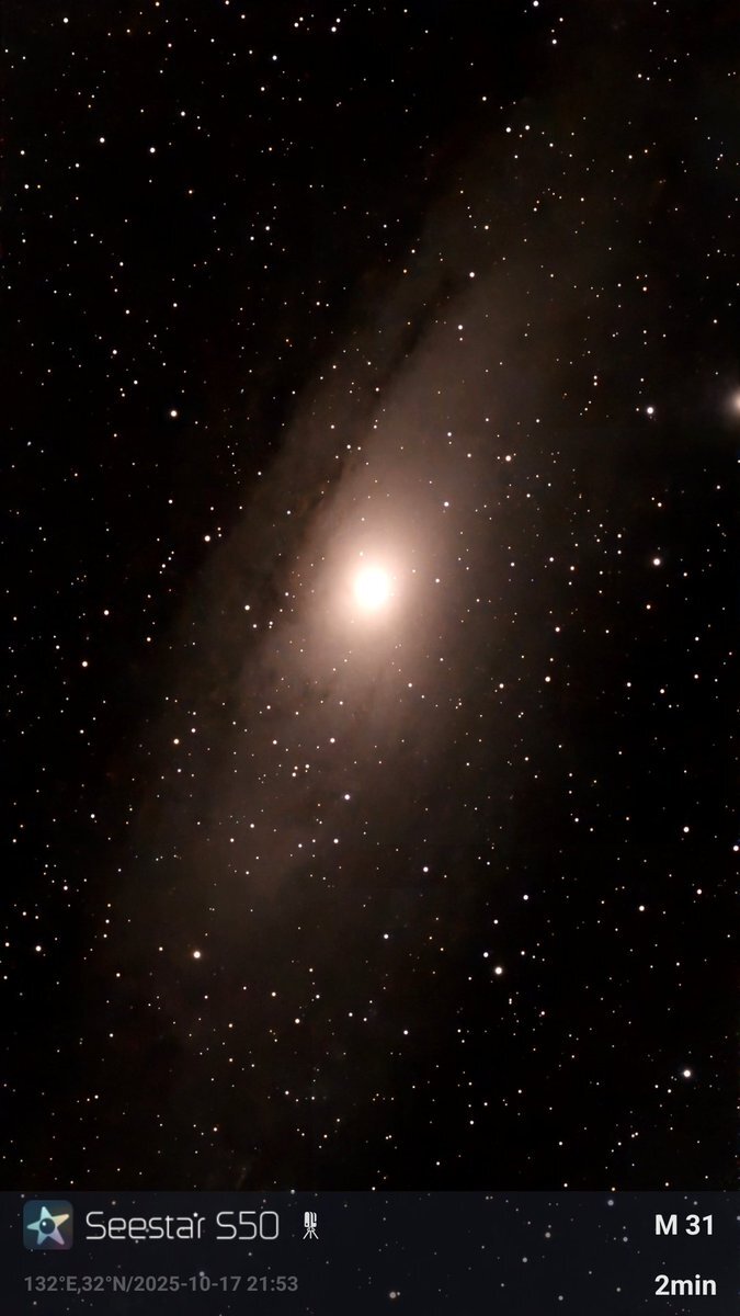 天体望遠鏡:seestar フィルター:off 撮影場所: 画像編集ソフト:未使用、撮って出しのみです。 撮影時間:10分< 発見・気づきなど>Seestarでスタック中にコントラストなどを調整しま・・・▶