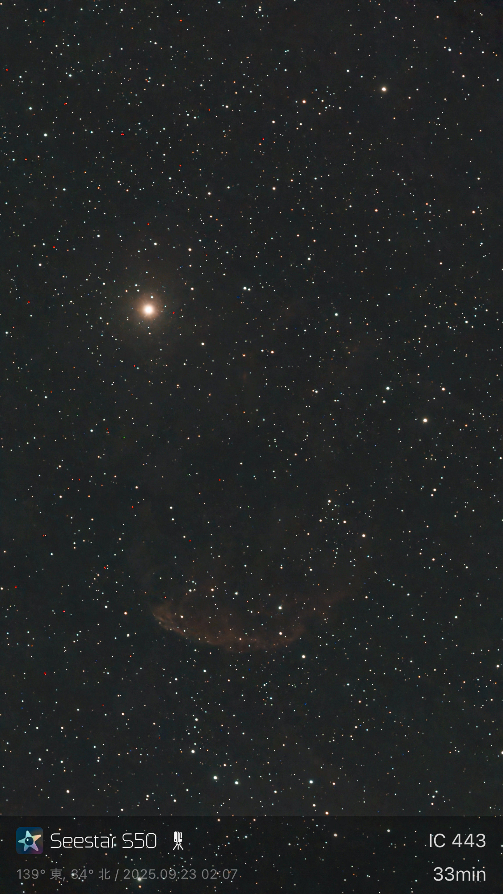最高に暗い空の撮影でしたが、思ったよりもずっと淡く、33分では今ひとつの画像になりました。これから冬に向かいチャンスが増えるのでEQモードで再挑戦したいです。