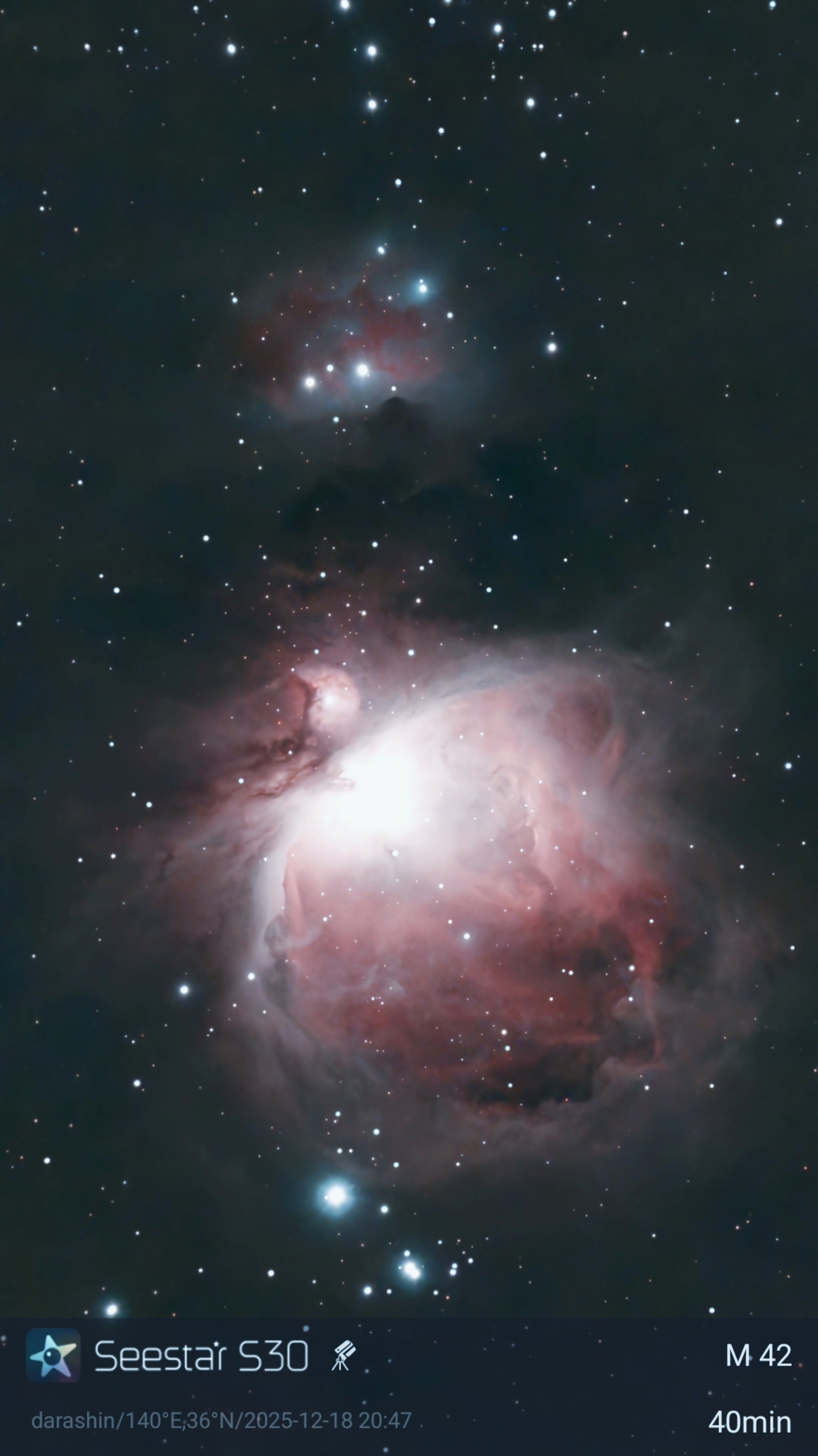 :少年時代から何回も望遠鏡を買っては、月と土星以外に見るものがなくなってドロップアウトしていました。Seestarの登場で、街中からでも銀河や星雲を見られるようになり、テクノロジーの進化に驚嘆するばかりです。今度こそ天体観測を一生ものの趣味にしたいと思っております。